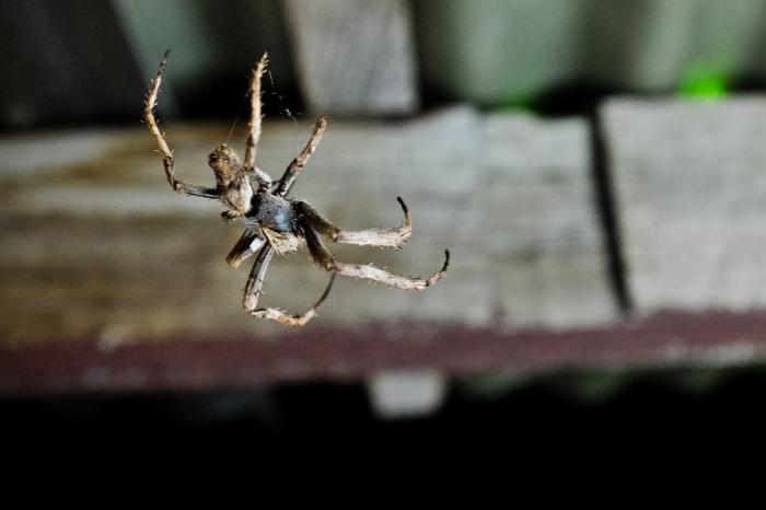 Found a spider the other day, hanging down from the beam above our heads. Looks like it could give a very painful bite! As I was trying to take a photo it kept spinning on its web to point me, kept thinking it was going to jump!